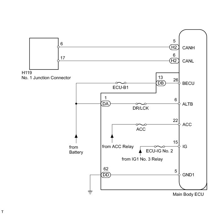 2. CHECK FOR OPEN IN CAN BUS WIRE (MAIN BODY ECU BRANCH WIRE)