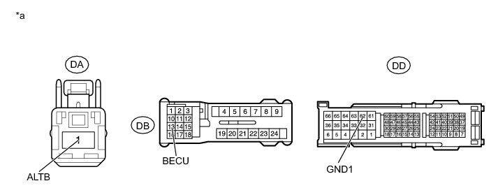 (b) Disconnect the DA, DB and DD main body ECU connectors.