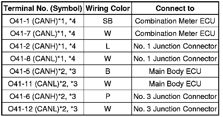 * The connectors connected to the junction connector can be distinguished by the colors of the bus lines and the connecting side of the connector.