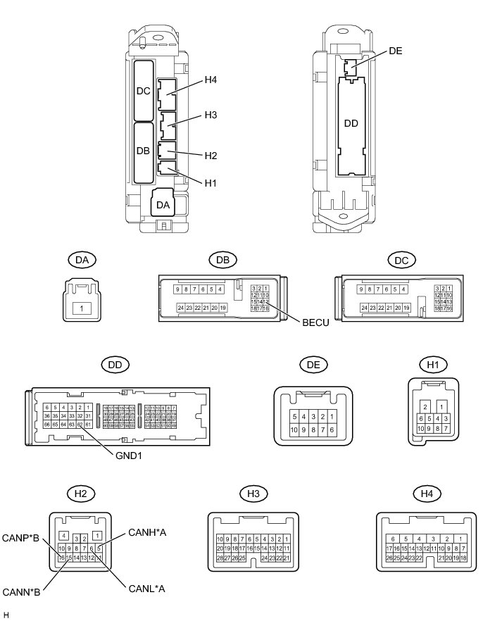 (a) Disconnect the H2, DB and DD main body ECU connectors.