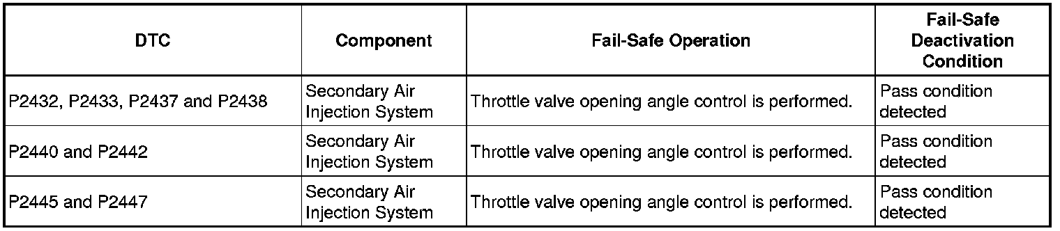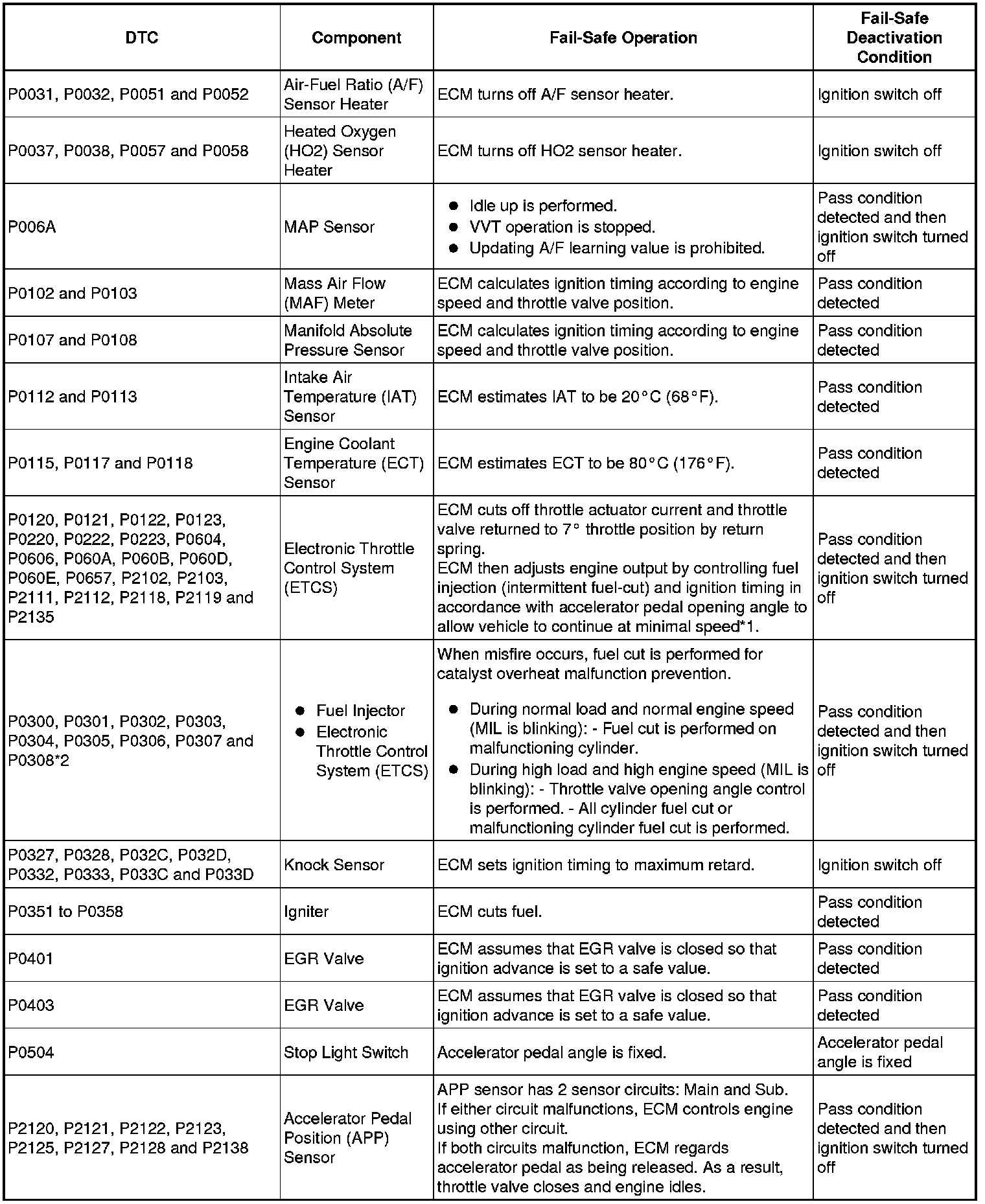 If any of the following DTCs are stored, the ECM enters fail-safe mode to allow the vehicle to be driven temporarily.