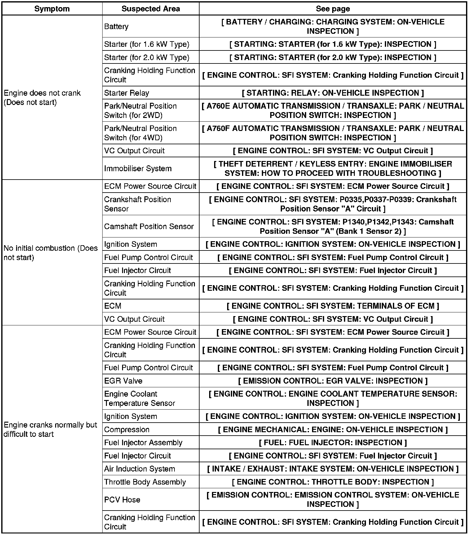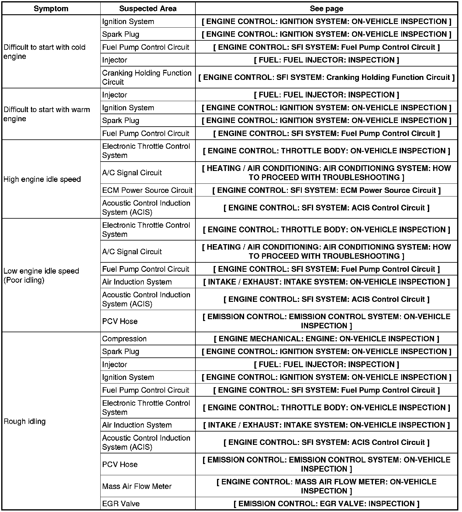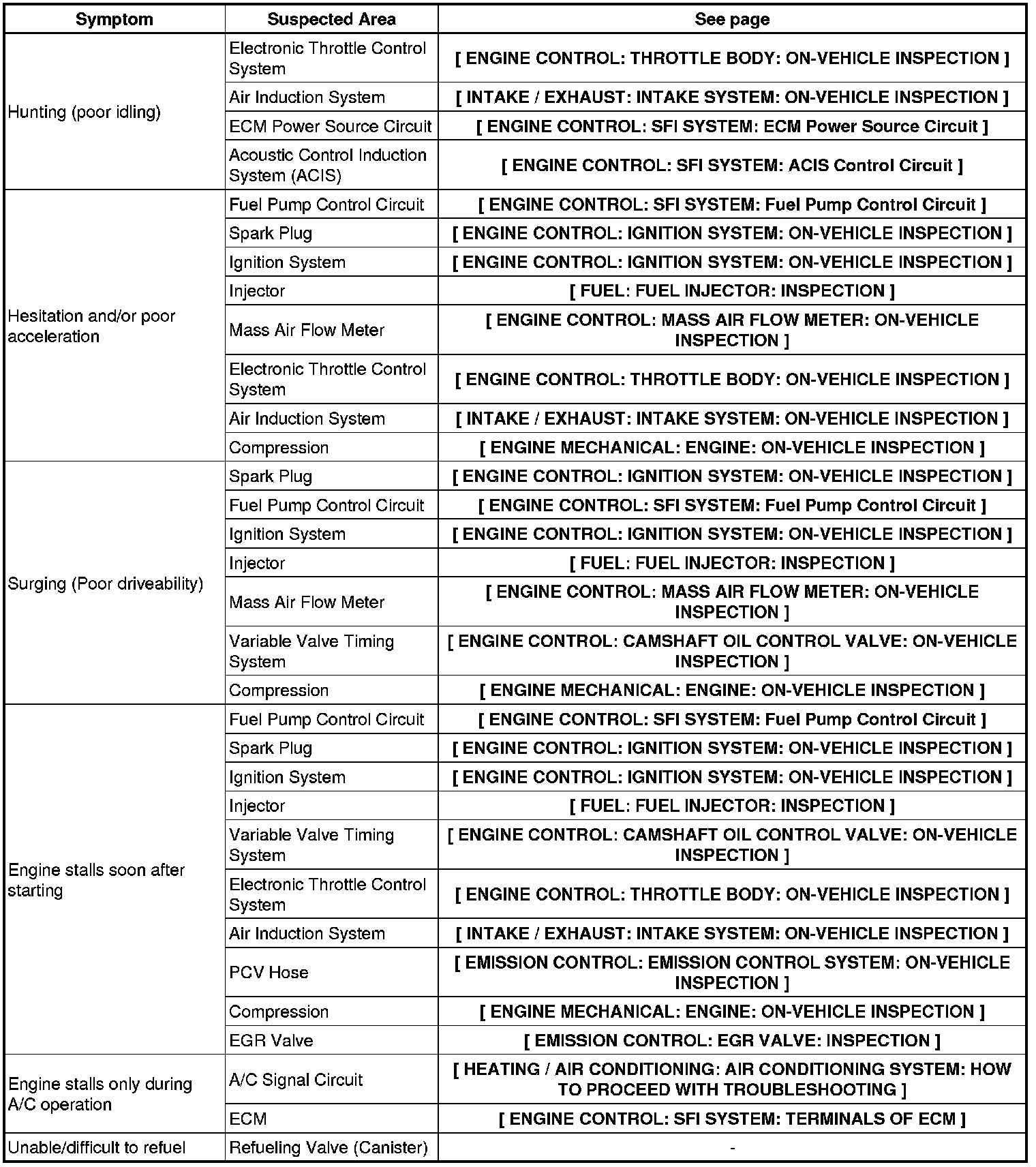 1UR-FE ENGINE CONTROL: SFI SYSTEM: PROBLEM SYMPTOMS TABLE