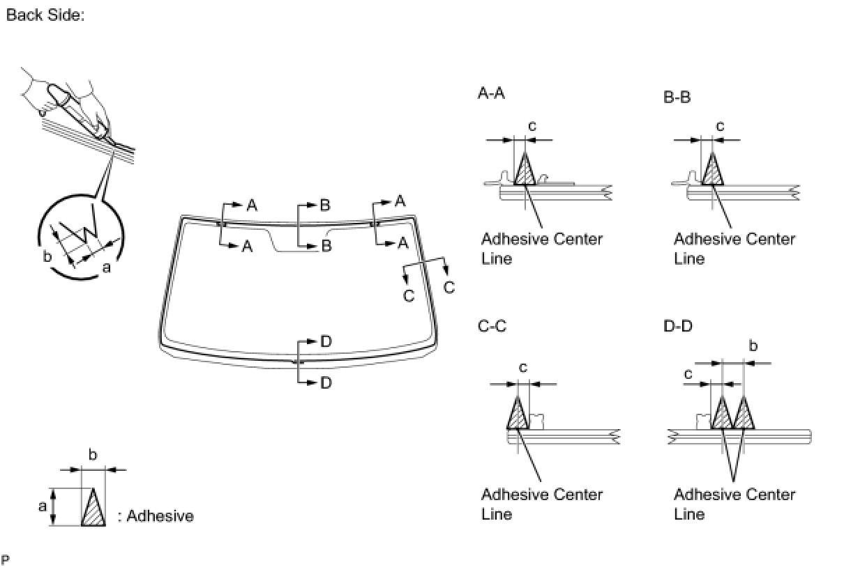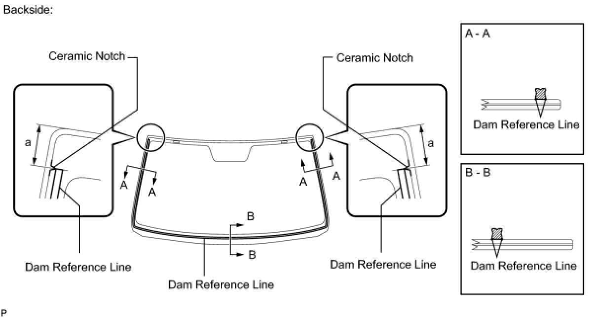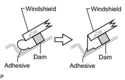 (b) Install a new adhesive dam onto the windshield glass, as shown in the illustration.