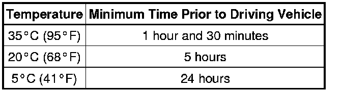Do not drive the vehicle for the amount of time written in the table below.