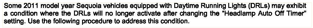 DRLS TURN OFF WHEN CHANGING "HEADLAMP AUTO OFF TIMER" SETTING