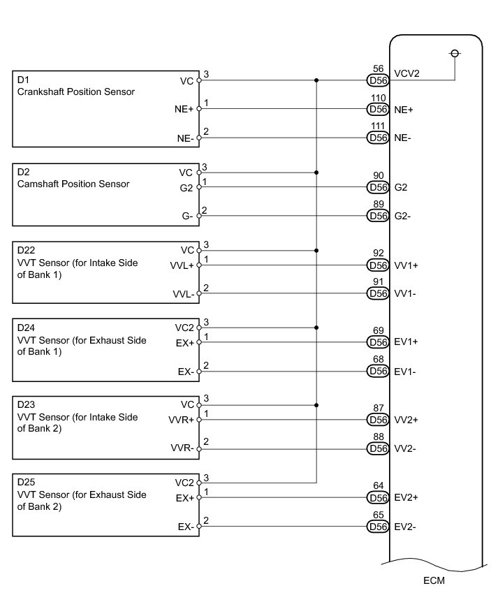 14. CHECK MIL (VVT SENSOR for Exhaust Side of Bank 2)