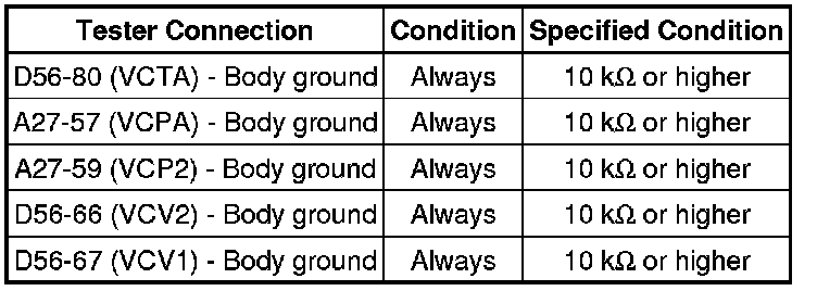 When the VC circuit is short-circuited, the microprocessor in the ECM and sensors that are supplied with power through the VC circuit are inactivated because the power is not supplied from the VC circuit. Under this condition, the system does not start up and the MIL does not illuminate even if the system malfunctions.