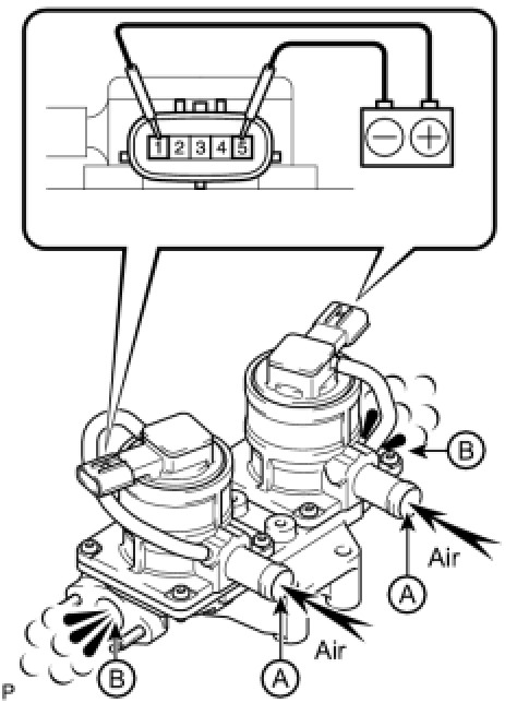(2) Apply battery voltage to the connector, and check the air switching valve operation.