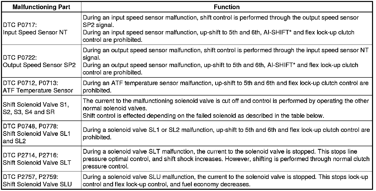 AB60E AUTOMATIC TRANSMISSION / TRANSAXLE: AUTOMATIC TRANSMISSION SYSTEM: FAIL-SAFE CHART