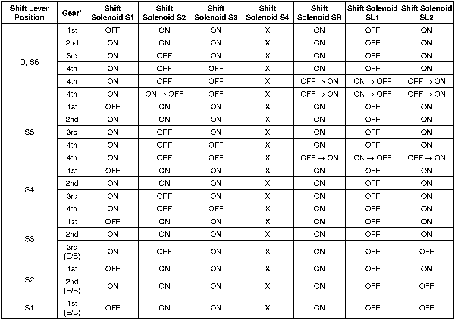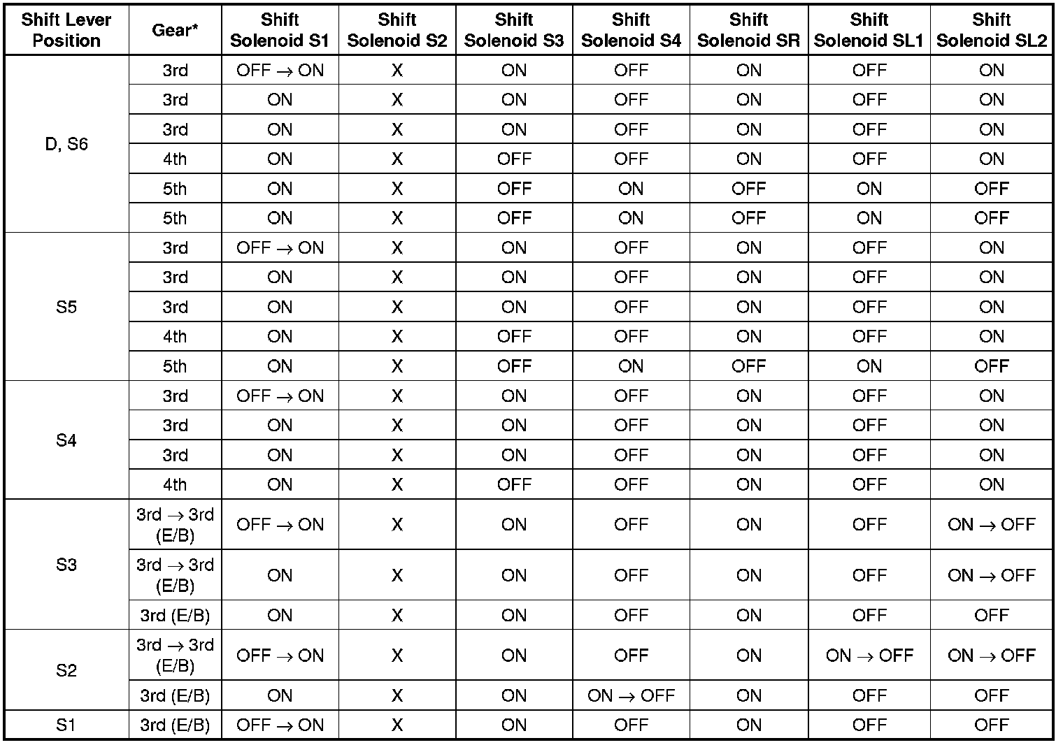 Shift Solenoid Valve Normal Operation Chart