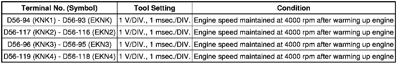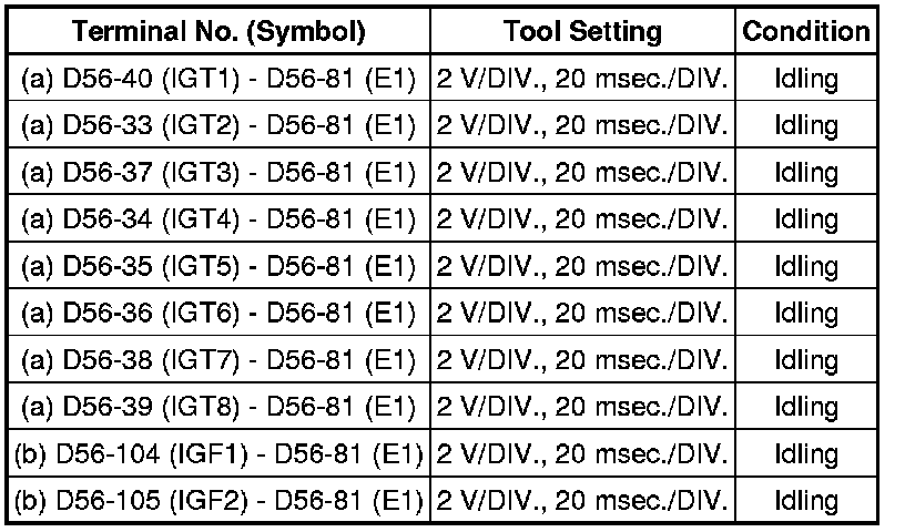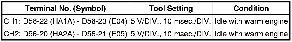 If the waveform is not similar to the illustration, check the waveform again after idling for 10 minutes or more.