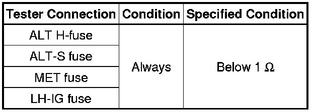If the result is not as specified, replace the fuses as necessary.
