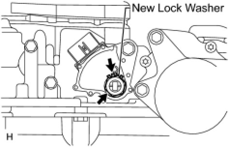 (i) Using a screwdriver, bend the tabs of the lock washer.