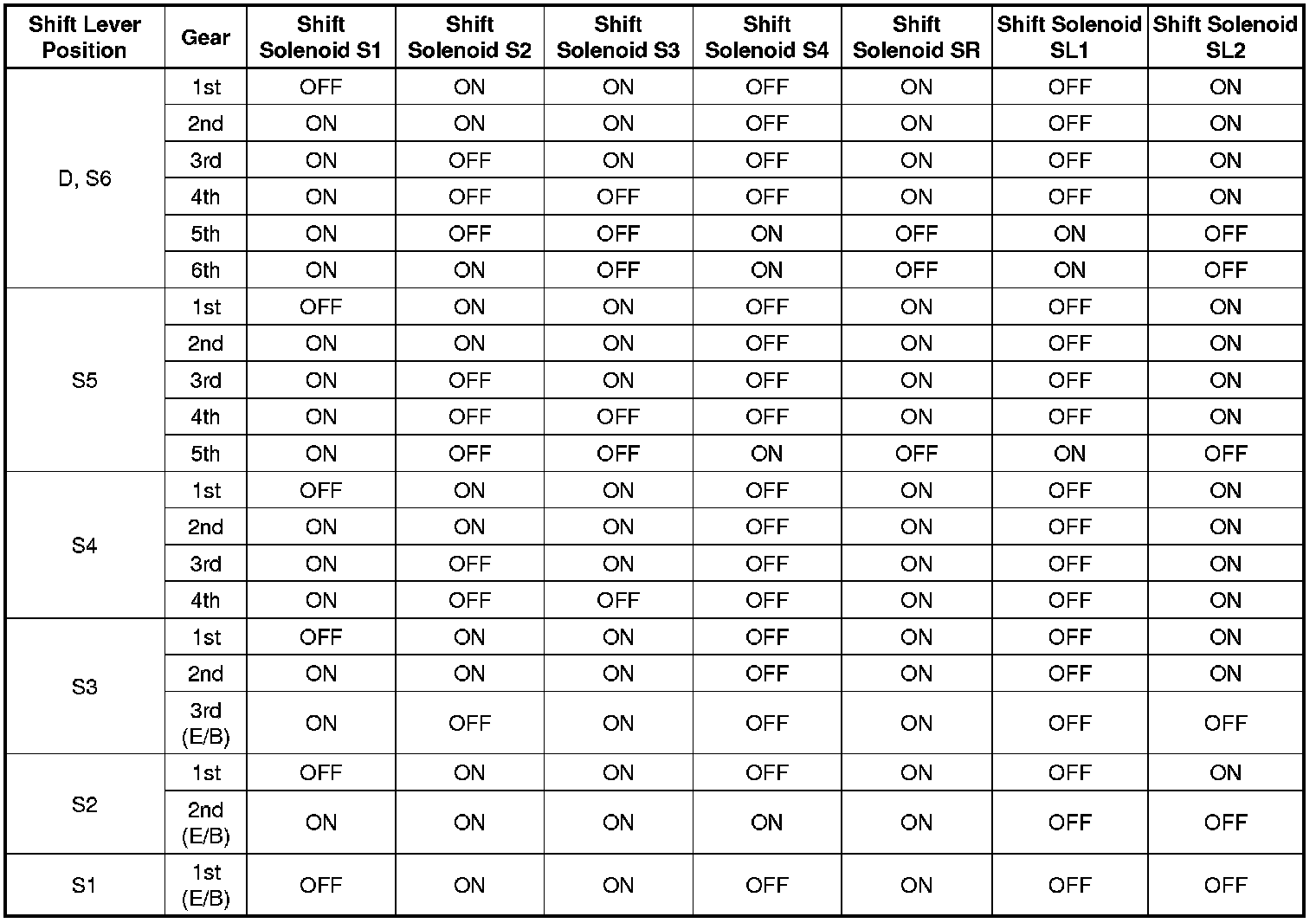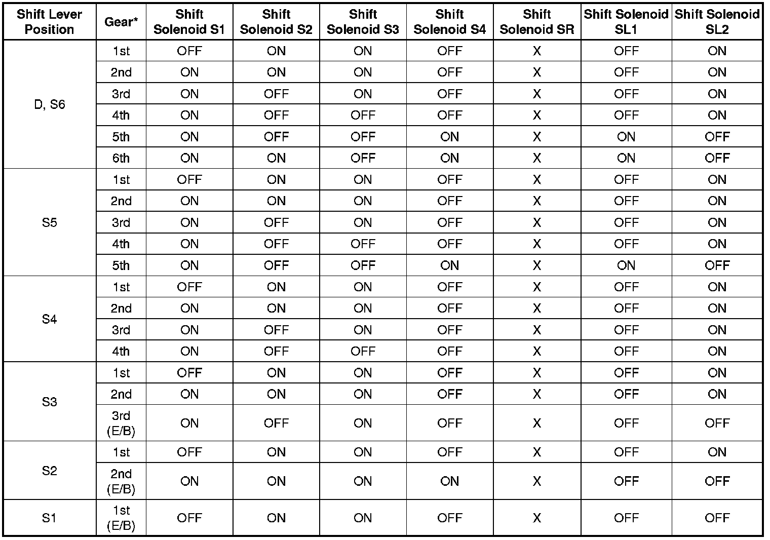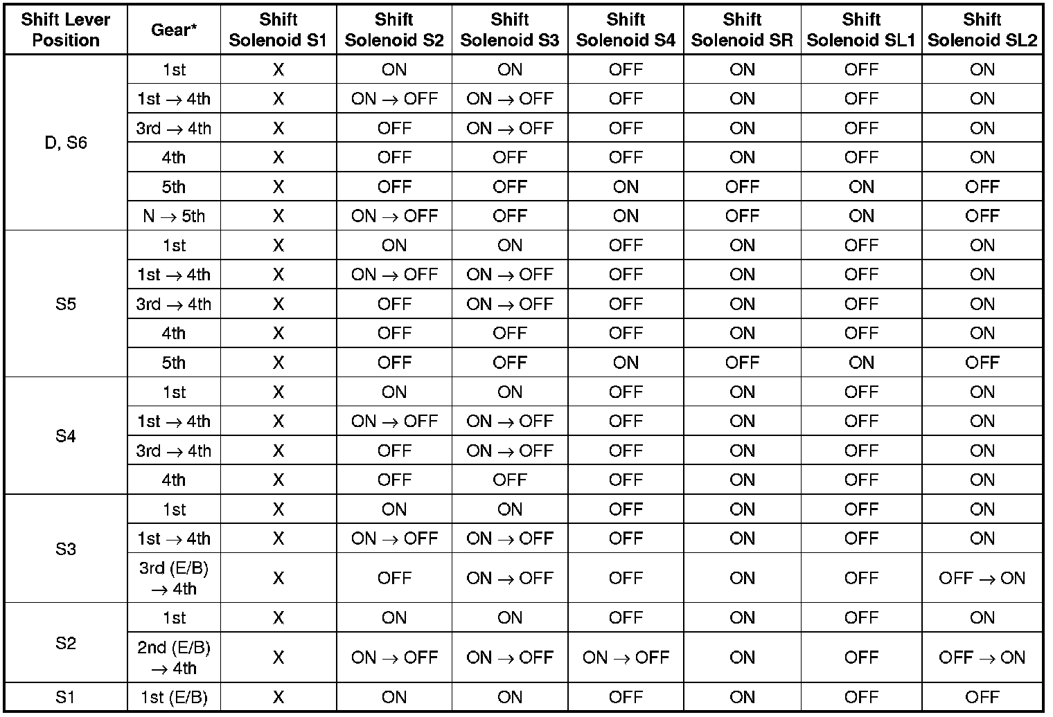 Shift Solenoid Valve Normal Operation Chart