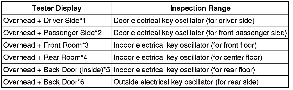 * *2: Perform the same inspection above for the door electrical key oscillator (for front passenger side).