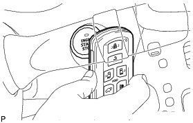 * This vehicle does not have a key slot. Therefore, touch the logo of the key to the engine switch when registering the key, as shown in the illustration.