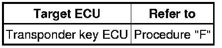 * When the transponder key ECU is replaced, the ECU communication ID of the ECM must be registered into the transponder key ECU to match their ECU communication IDs.