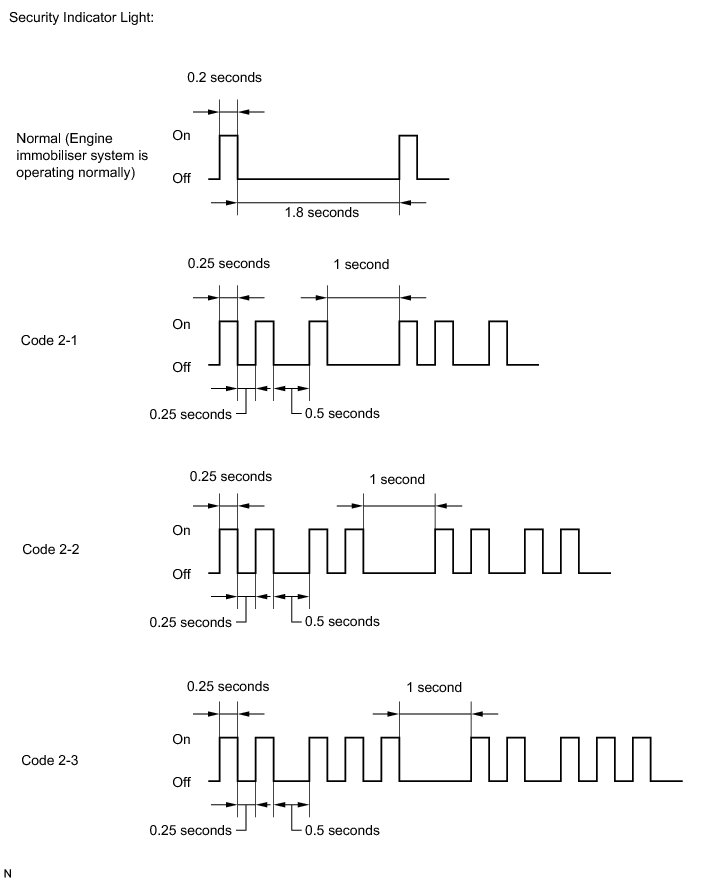 * When the engine immobiliser system is operating normally and the key is pulled out, the security indicator light blinks continuously.