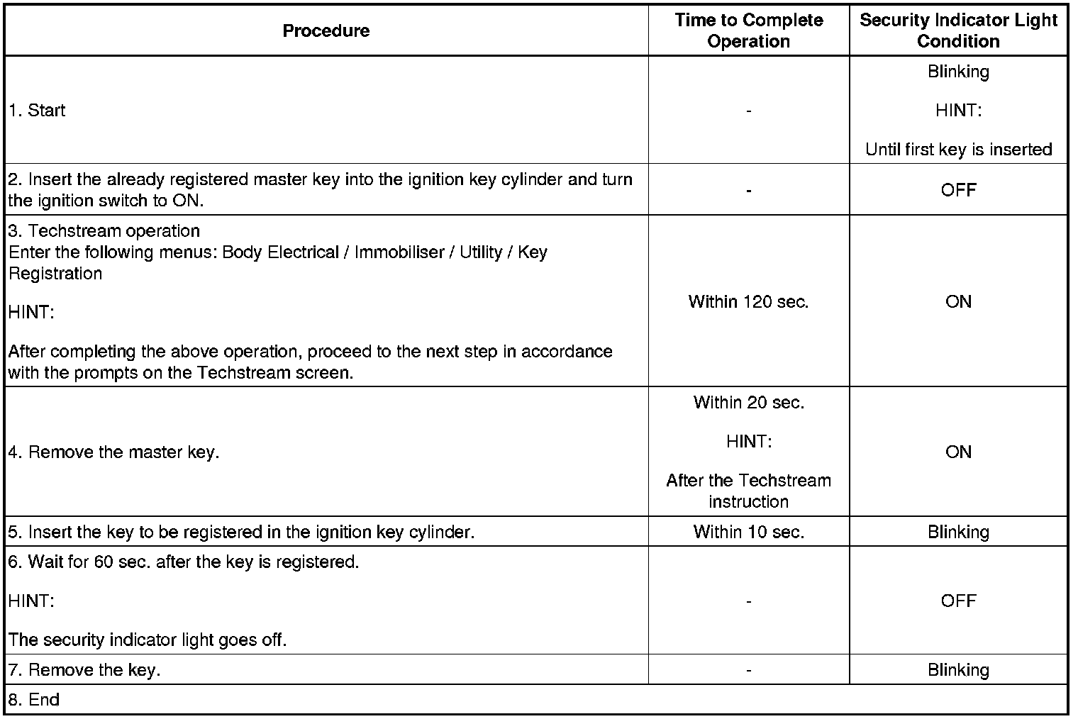 * A brief outline of a key code registration procedure is shown above. For detailed information, refer to the Techstream screen.