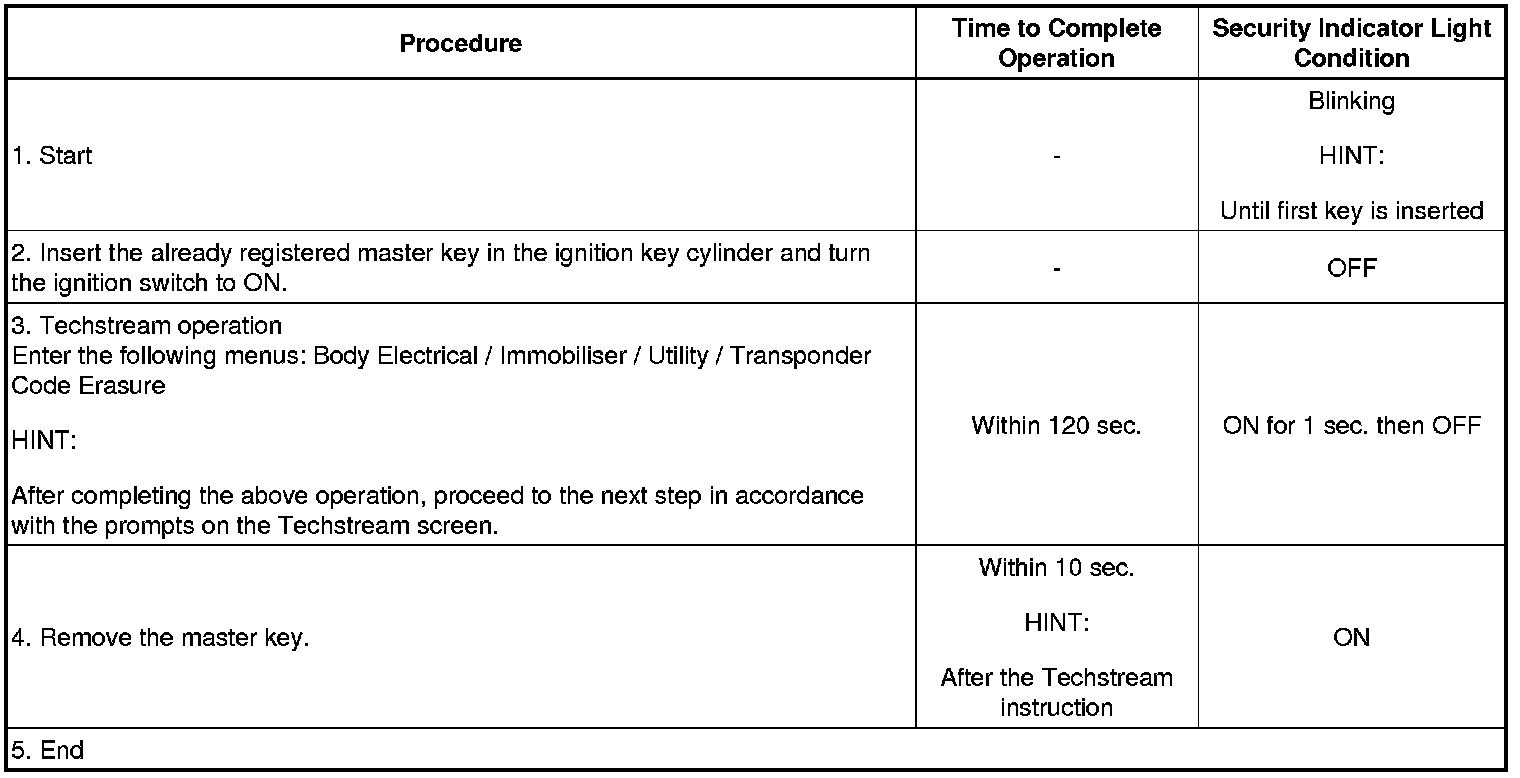 * To perform this procedure, at least 1 key should have been registered to the transponder key ECU.