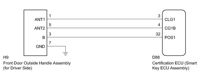 3. CHECK HARNESS AND CONNECTOR (CERTIFICATION ECU - FRONT DOOR OUTSIDE HANDLE)