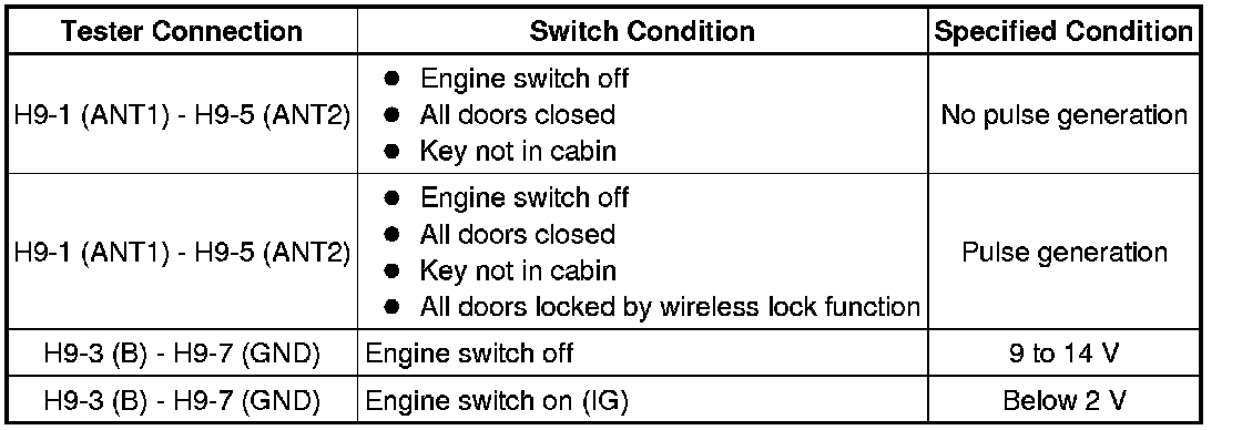 (b) Measure the voltage and check for pulses according to the value(s) in the table below.