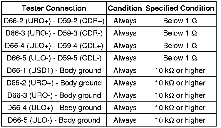 (a) Using an oscilloscope, check the signal waveform between each terminal and the body ground according to the conditions, as shown in the chart below.