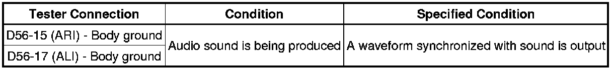 (b) Using an oscilloscope, check the signal waveform between each terminal and the body ground according to the conditions, as shown in the chart below.