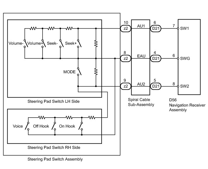 NAVIGATION / MULTI INFO DISPLAY: NAVIGATION SYSTEM (w/ USB Audio System): Steering Pad Switch Circuit