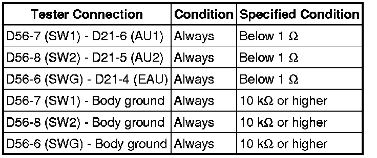 If there is an open in the circuit, the audio system cannot be operated using the steering pad switch assembly.