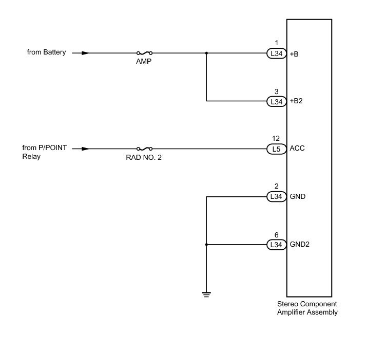NAVIGATION / MULTI INFO DISPLAY: NAVIGATION SYSTEM (w/ USB Audio System): Stereo Component Amplifier Power Source Circuit