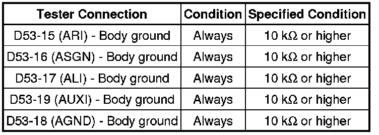 If there is an open or short in the circuit, sound cannot be heard from the speakers even if there is no malfunction in the navigation receiver assembly or speakers.