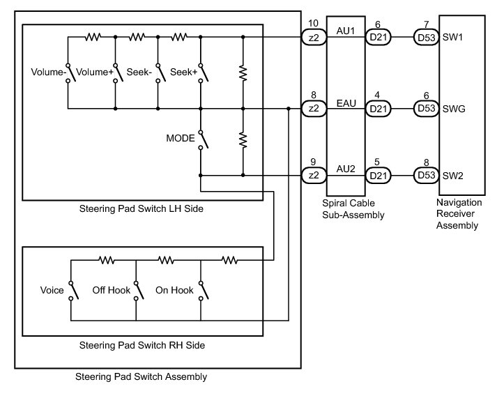 NAVIGATION / MULTI INFO DISPLAY: NAVIGATION SYSTEM (w/o USB Audio System): Steering Pad Switch Circuit