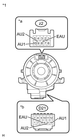 (b) Disconnect the D21 spiral cable sub-assembly connector.