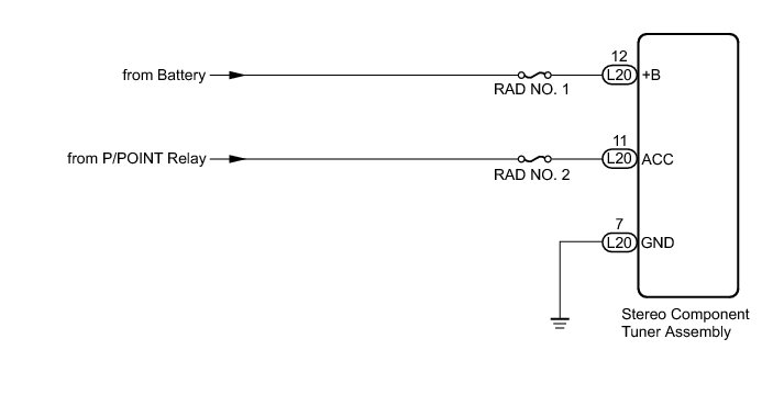 NAVIGATION / MULTI INFO DISPLAY: NAVIGATION SYSTEM (w/o USB Audio System): Stereo Component Tuner Power Source Circuit