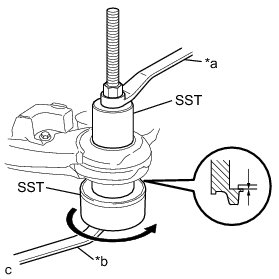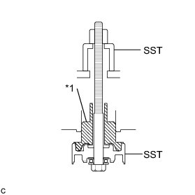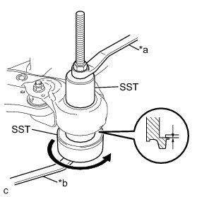 (c) Using SST, install the front suspension member body mounting front cushion as shown in the illustration.