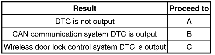 C -- GO TO DIAGNOSTIC TROUBLE CODE CHART Wireless Door Lock Control System (w/o Smart Key System)