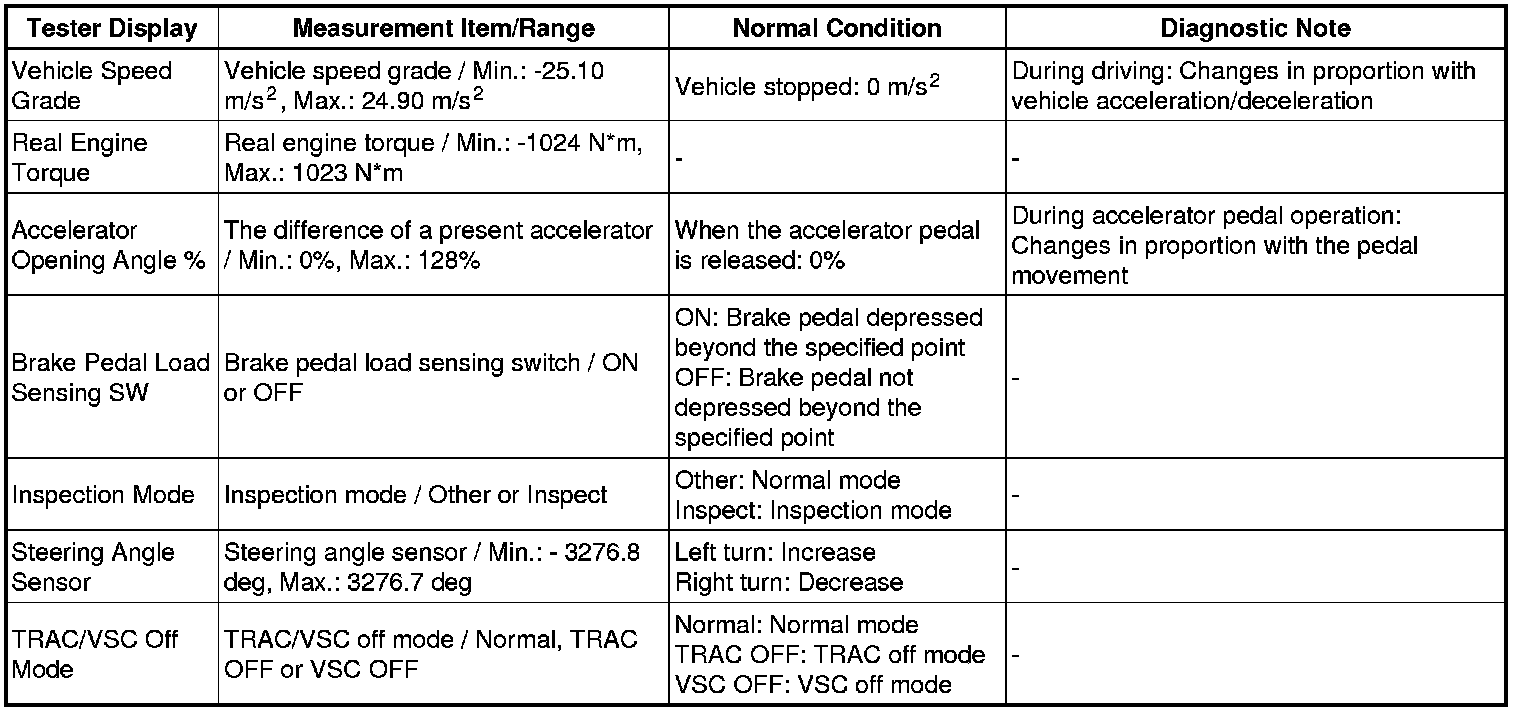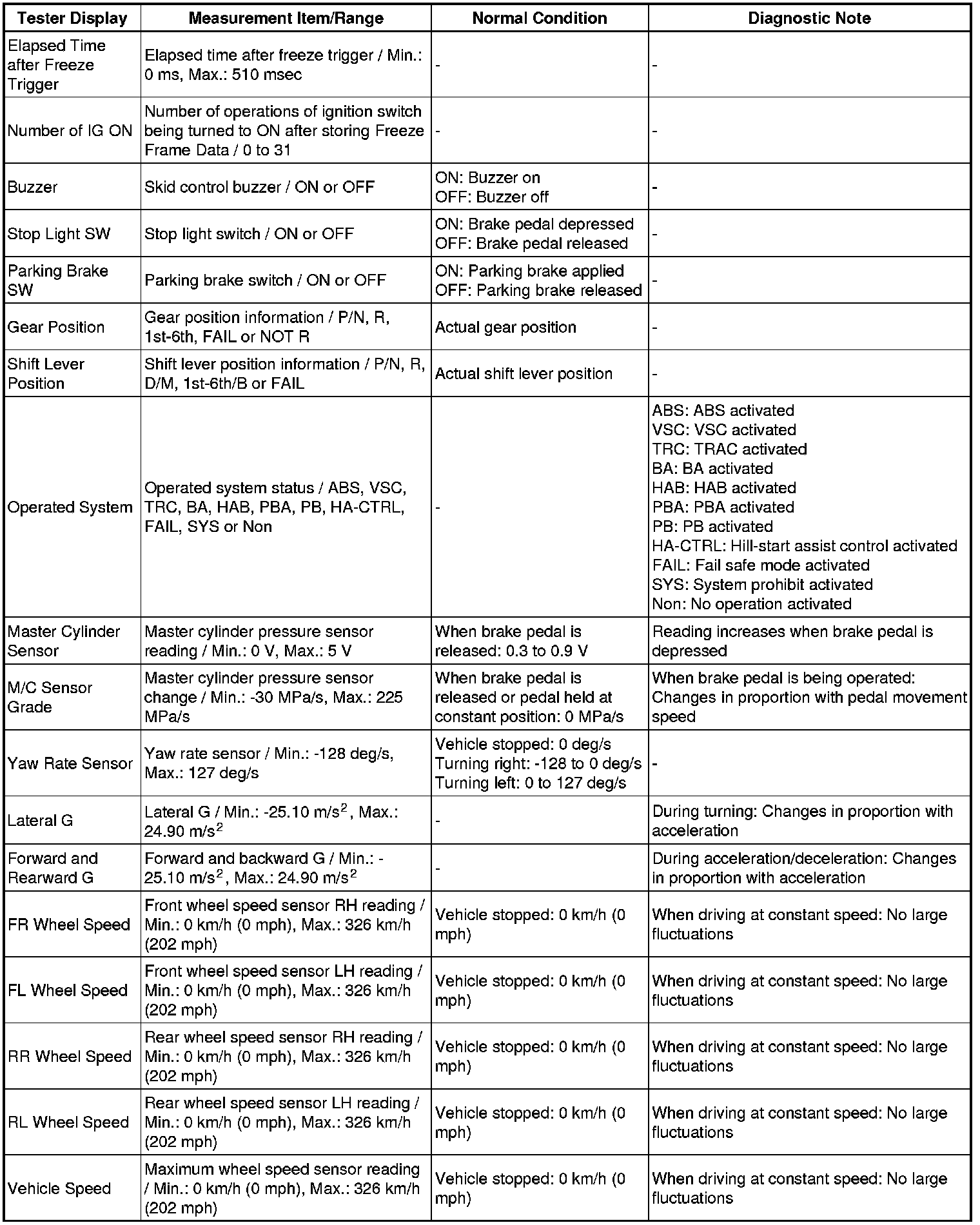 * Freeze Frame Data at the time the ABS operates: