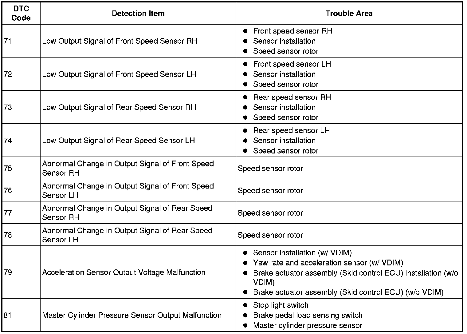 * During Test Mode (signal check), the skid control ECU records all DTCs detected in the sensor check. By performing Test Mode (signal check), the codes are cleared if a normal condition is confirmed. The remaining codes are the codes where a malfunction was found.