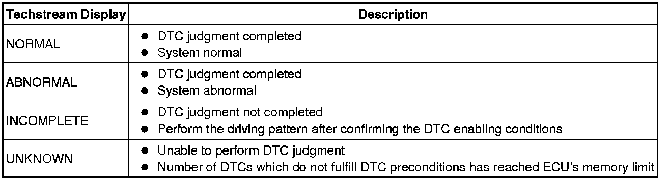 * With "All Readiness", you can check whether or not the DTC judgment has been completed by using the Techstream.
