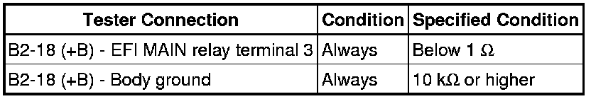When the ignition switch is turned to ON, voltage from the ECM MREL terminal is applied to the EFI MAIN relay. This causes the contacts of the EFI MAIN relay to close, which supplies power to terminal +B of the TCM.