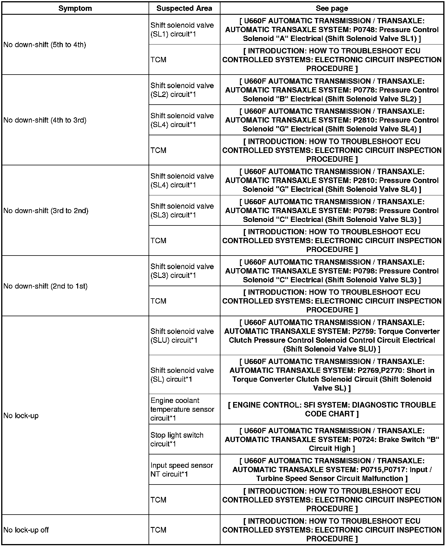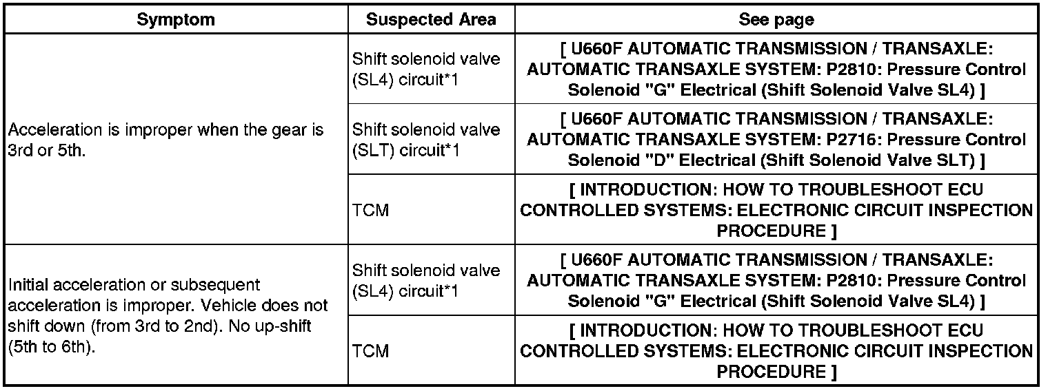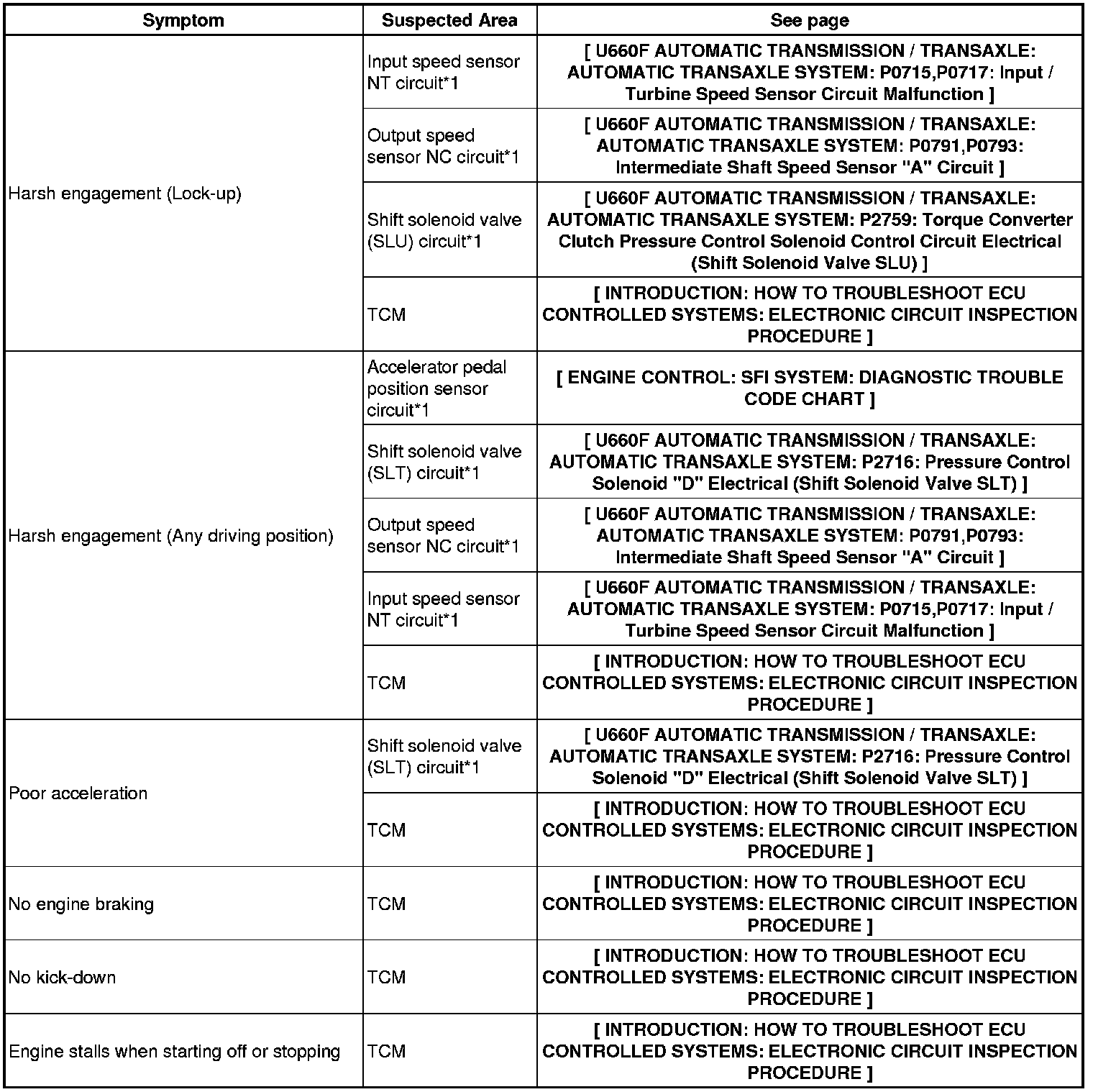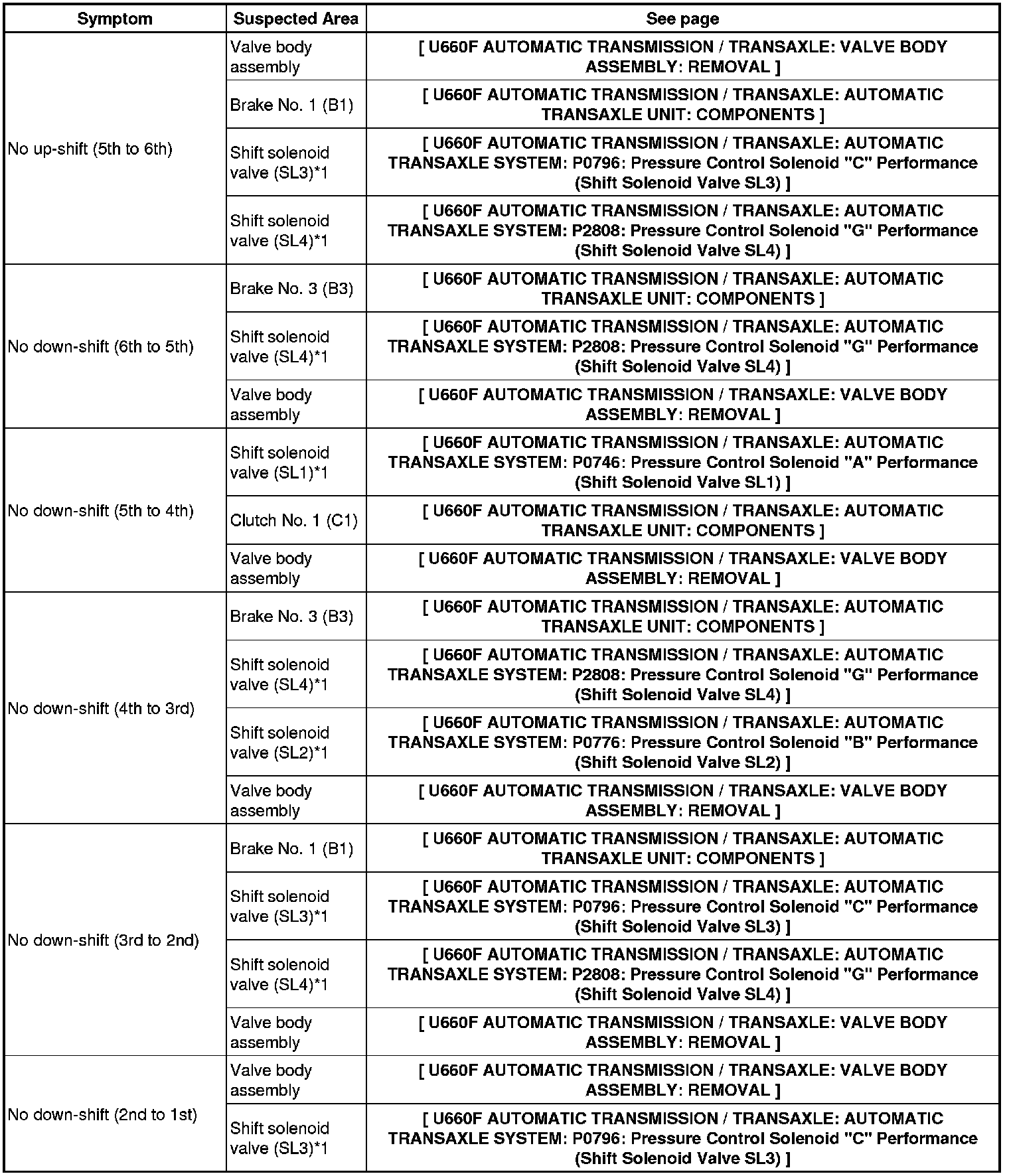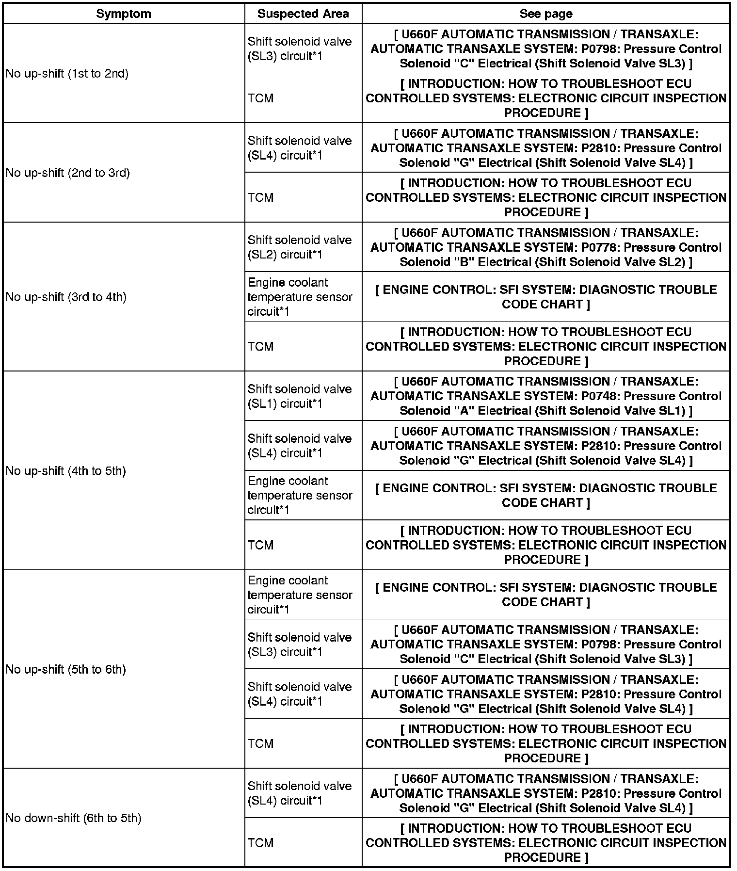 U660F AUTOMATIC TRANSMISSION / TRANSAXLE: AUTOMATIC TRANSAXLE SYSTEM: PROBLEM SYMPTOMS TABLE
