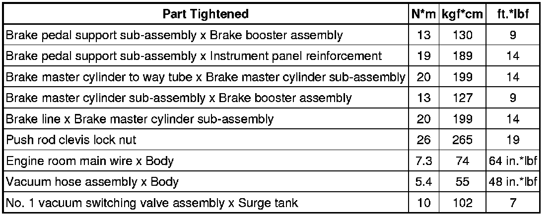 SPECIFICATIONS: BRAKE SYSTEM (OTHER): TORQUE SPECIFICATIONS