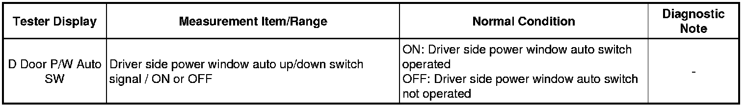 - Driver Side Power Window Auto Up / Down Function does not Operate with Power Window Master Switch
