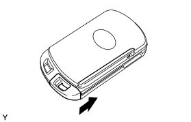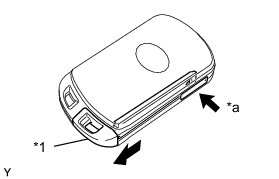 (a) Push the release hook knob in the direction indicated by the arrow in the illustration. Pull the emergency key out of the transmitter.