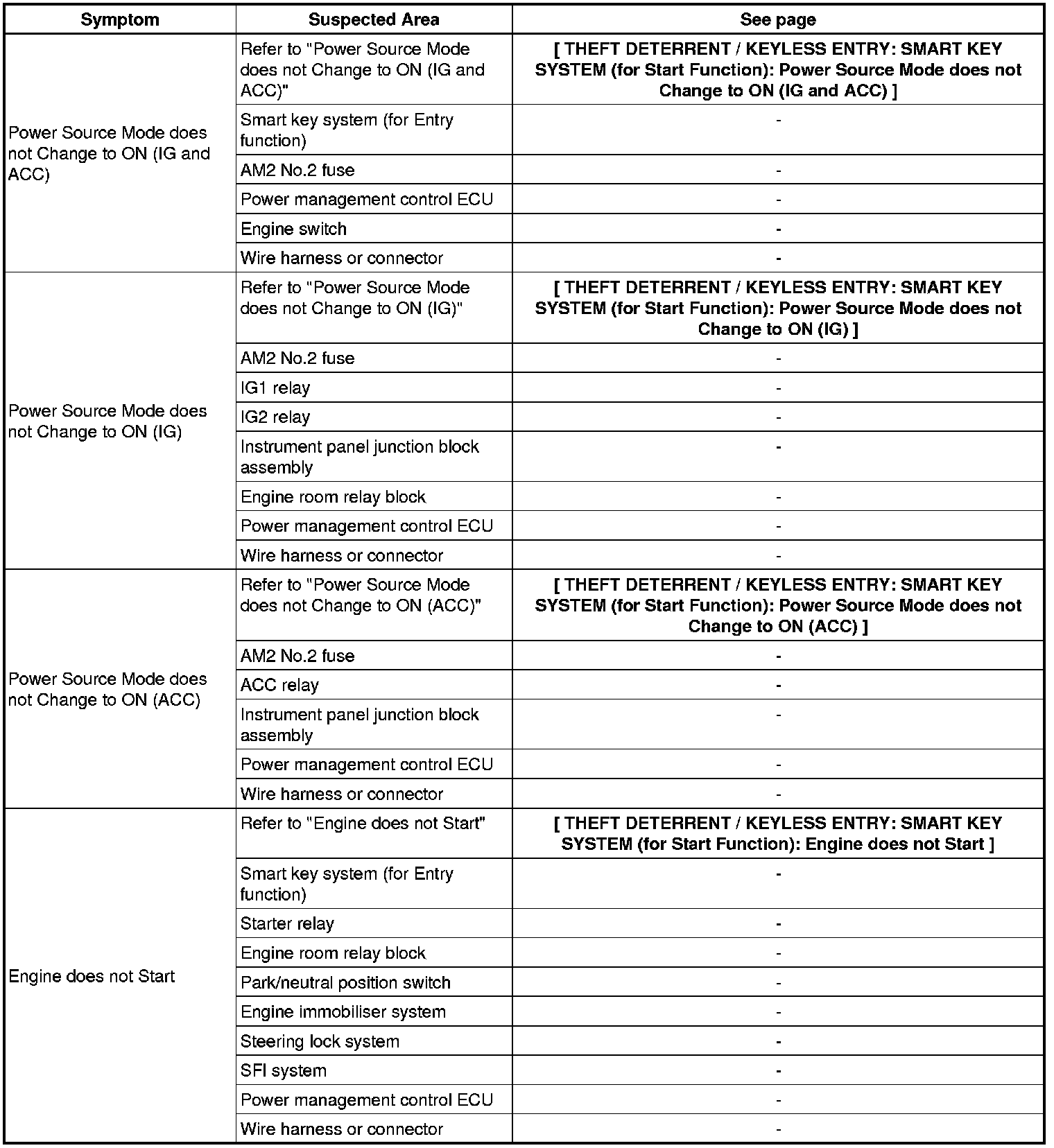 THEFT DETERRENT / KEYLESS ENTRY: SMART KEY SYSTEM (for Start Function): PROBLEM SYMPTOMS TABLE