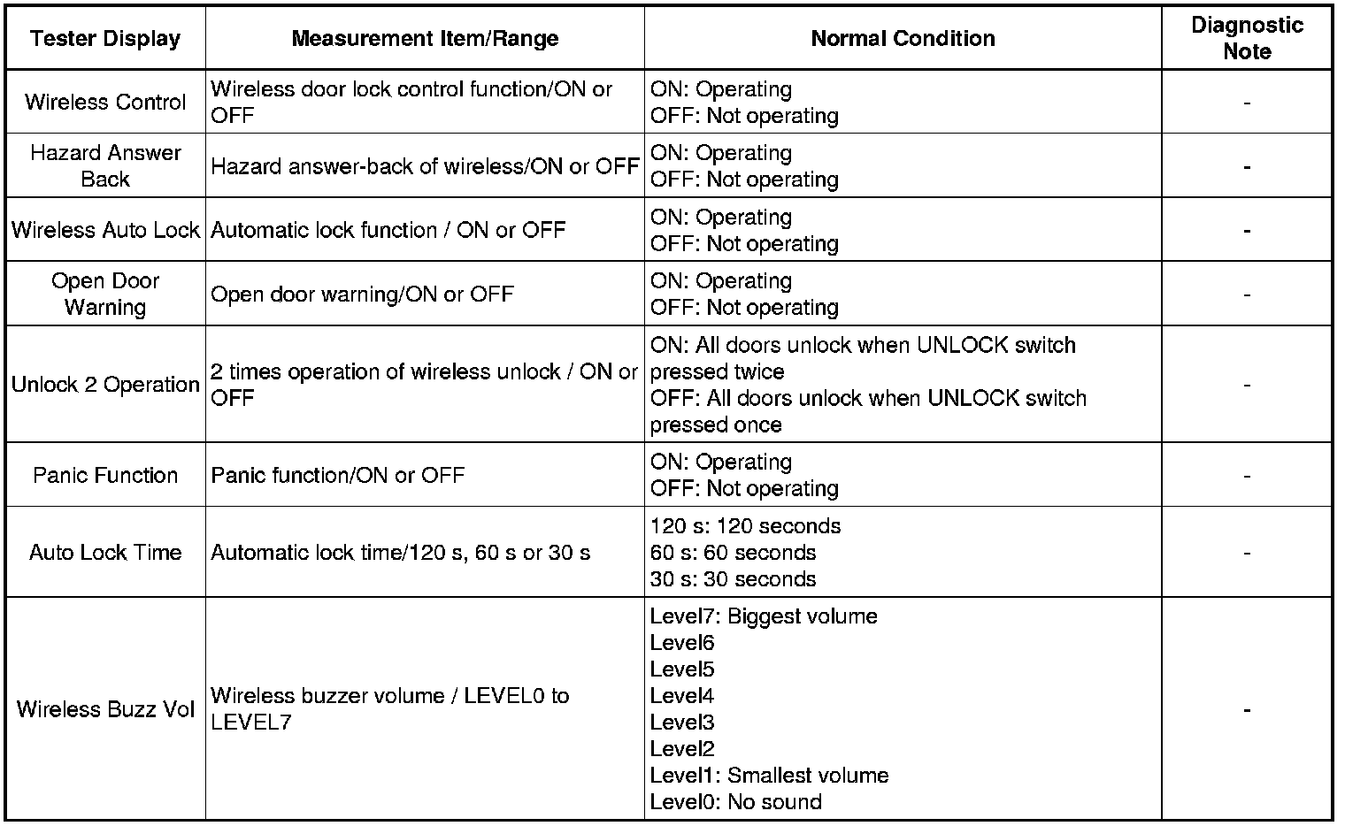 DOOR LOCK: WIRELESS DOOR LOCK CONTROL SYSTEM (w/ Smart Key System): DATA LIST / ACTIVE TEST
