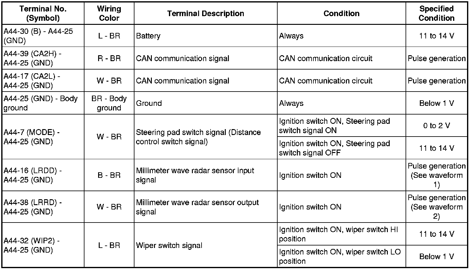 CRUISE CONTROL: DYNAMIC RADAR CRUISE CONTROL SYSTEM: TERMINALS OF ECU