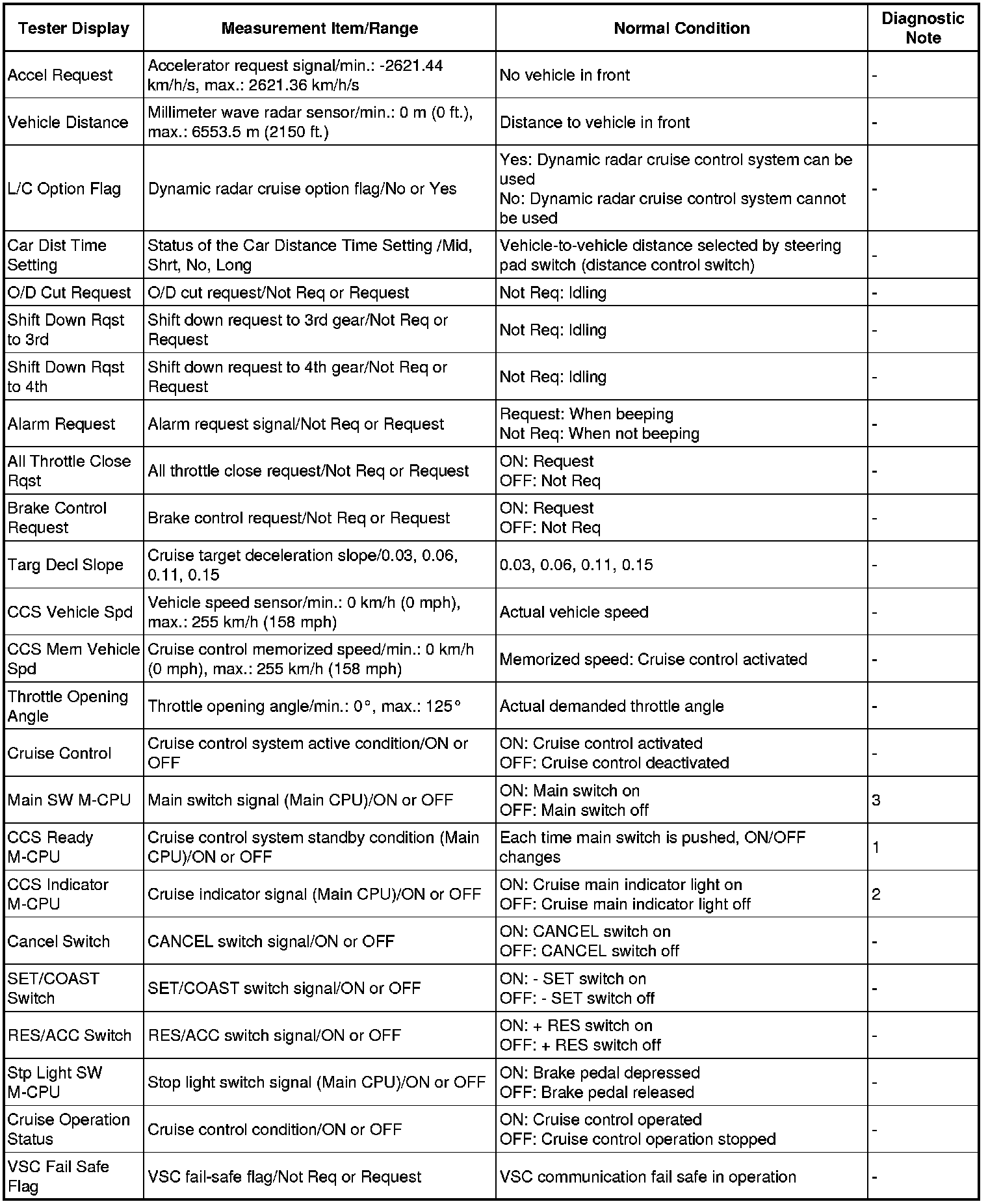 CRUISE CONTROL: DYNAMIC RADAR CRUISE CONTROL SYSTEM: DATA LIST / ACTIVE TEST