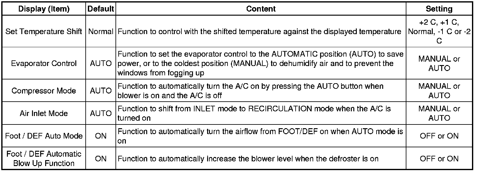 HEATING / AIR CONDITIONING: AIR CONDITIONING SYSTEM (for Automatic Air Conditioning System): CUSTOMIZE PARAMETERS